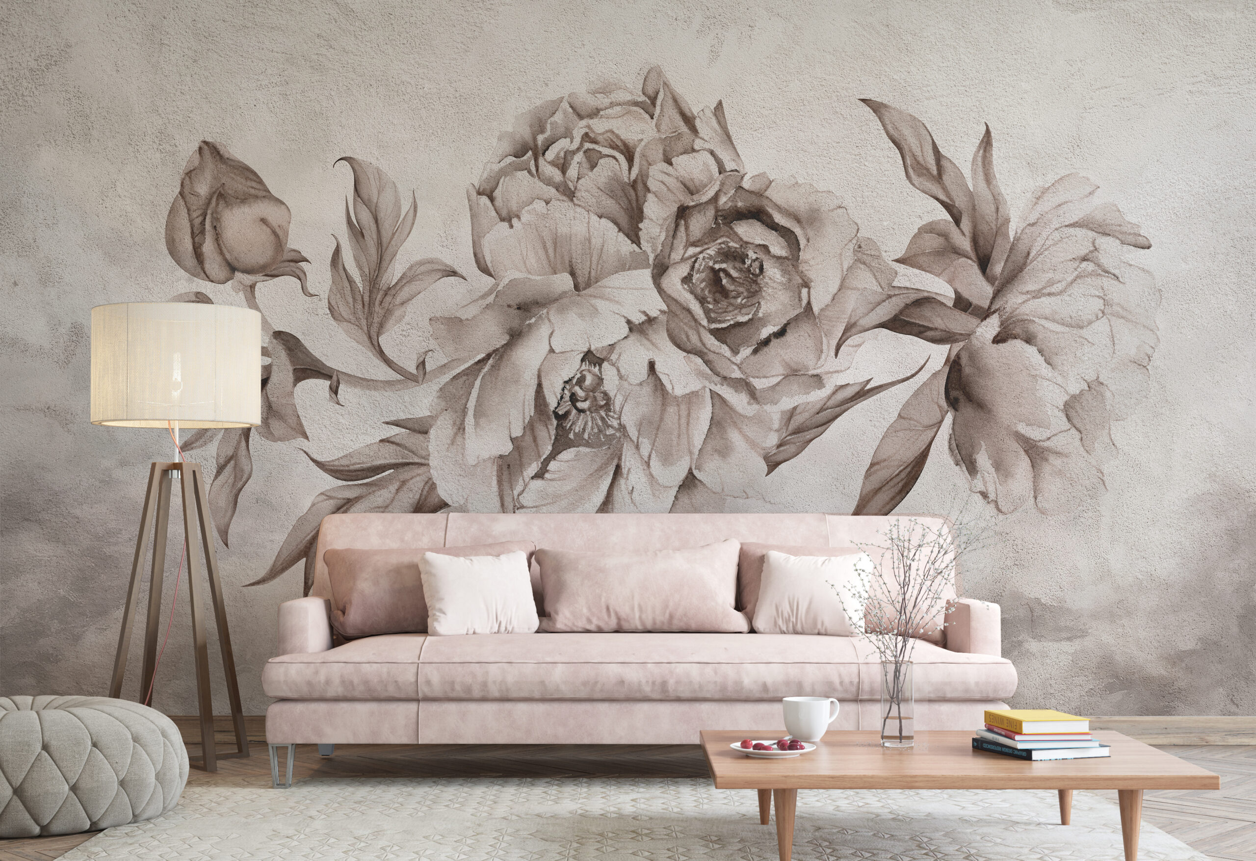 Květinové vzory vytvářejí v obývacím pokoji teplou, romantickou atmosféru a obzvláště dobře fungují v odpočinkových a spacích částech obývacích pokojů. Aranžmá z květin, listů a větví dodávají stěně podobu části zahrady přenesené do interiéru – dodávají aranžmá osobní, atmosférický tón, kterého je obtížné dosáhnout pouze barvou.