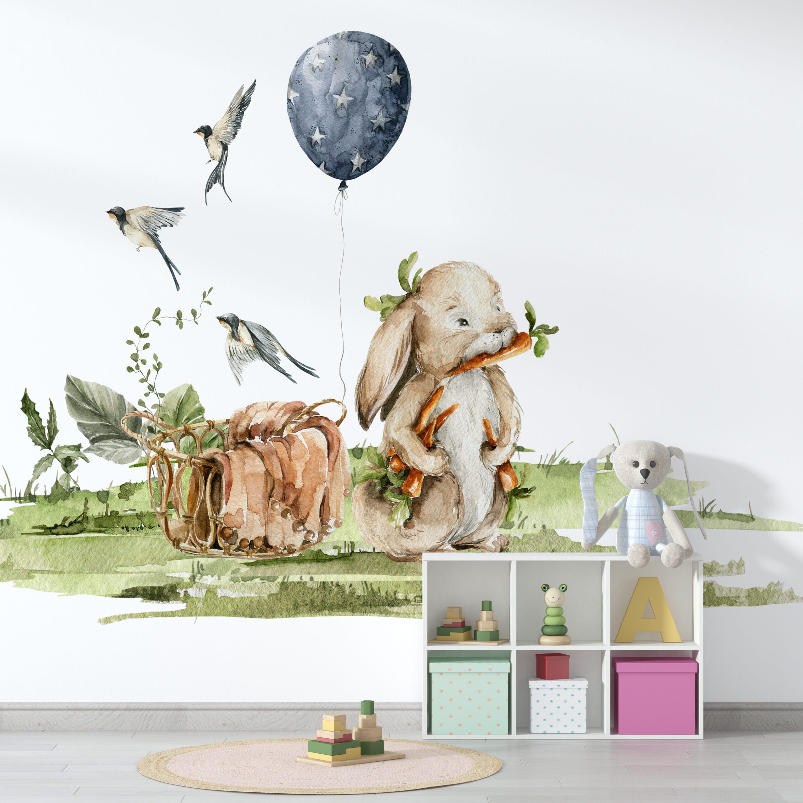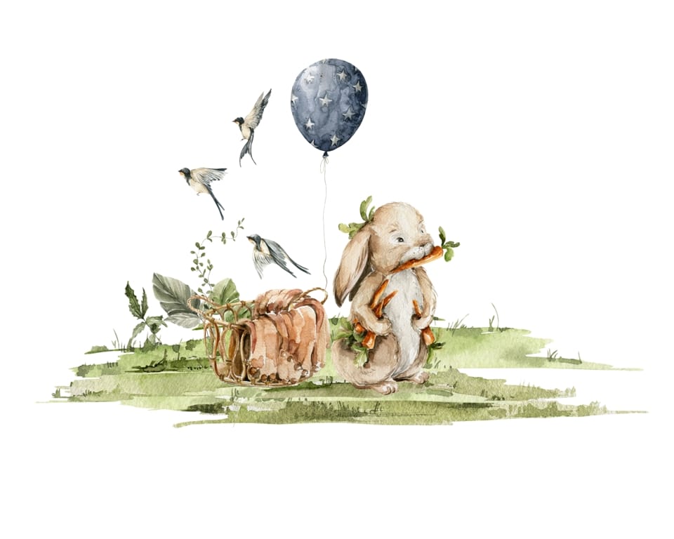 Fototapeta s veselým pohádkovým motivem pro děti Zajíc s balónkem - hlavní obrázek produktu