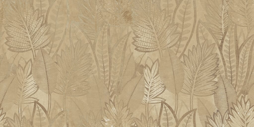 Teplá nástěnná malba s osvědčeným motivem exotické flóry do obývacího pokoje Beige Tropical Leaves - hlavní obrázek produktu