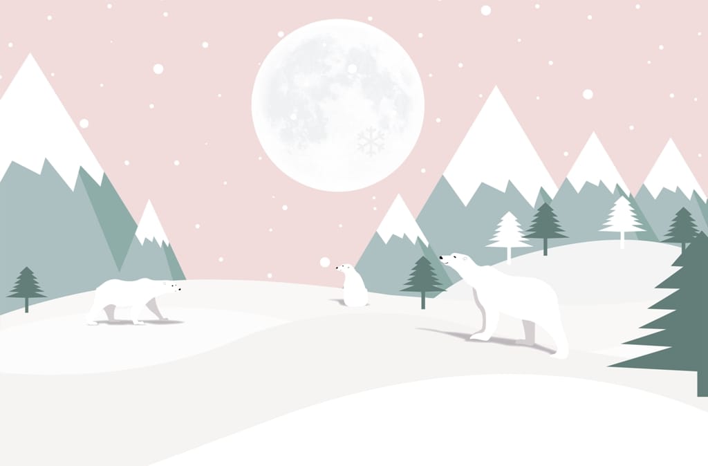 Fototapeta s moderní grafikou v zimním prostředí White Bears and Moon - hlavní obrázek produktu