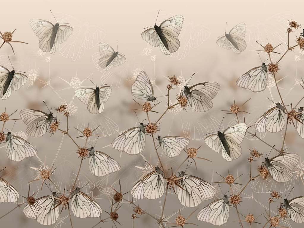 Nástěnná malba ve světlých odstínech s jemným motivem White Butterflies - obrázek číslo 2