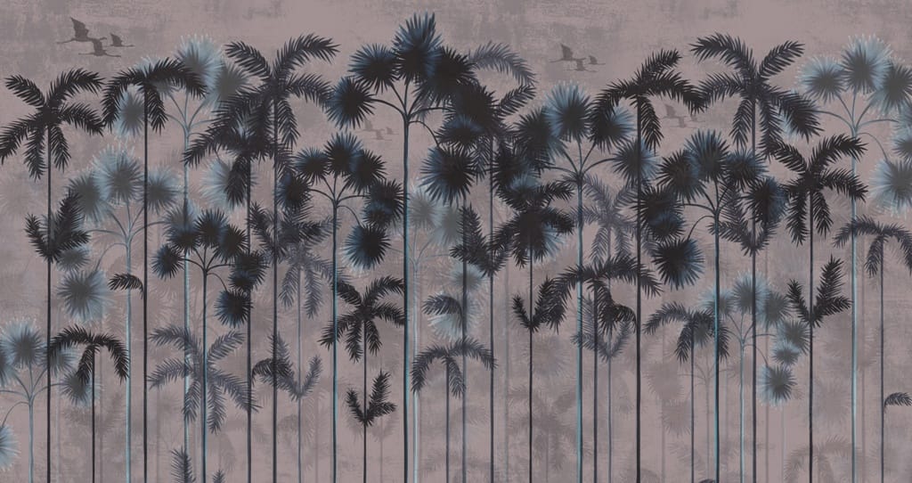 Nástěnná malba tropické krajiny v tmavých barvách Černé palmy - obrázek číslo 2