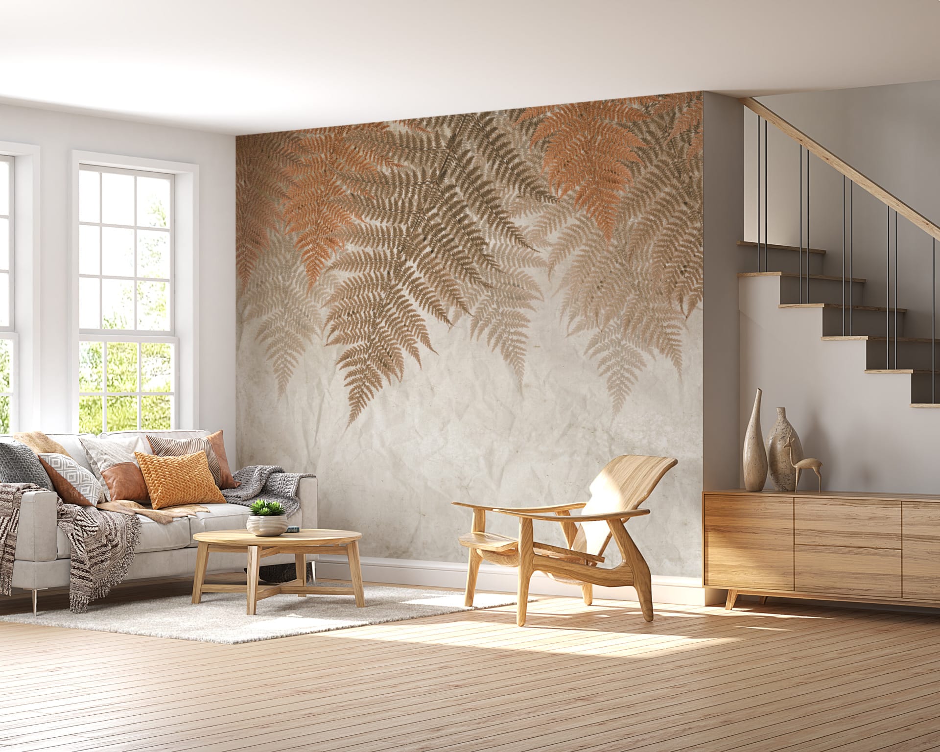 Nástěnná malba kapradinových listů v podzimní hnědé barvě Red Leaves - hlavní obrázek produktu