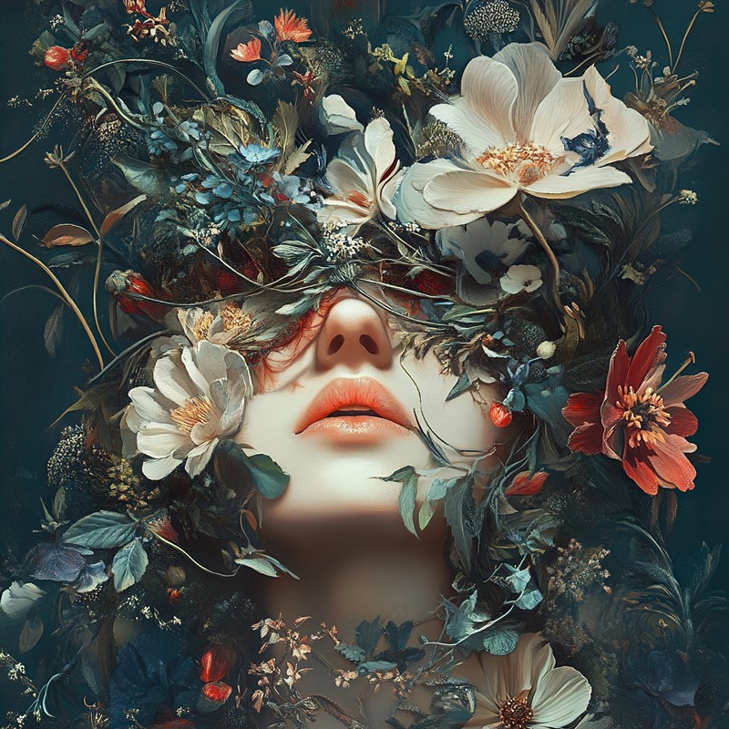 Domů / Fototapety / Styl / Fototapety Barevné / Tvář v květinách
