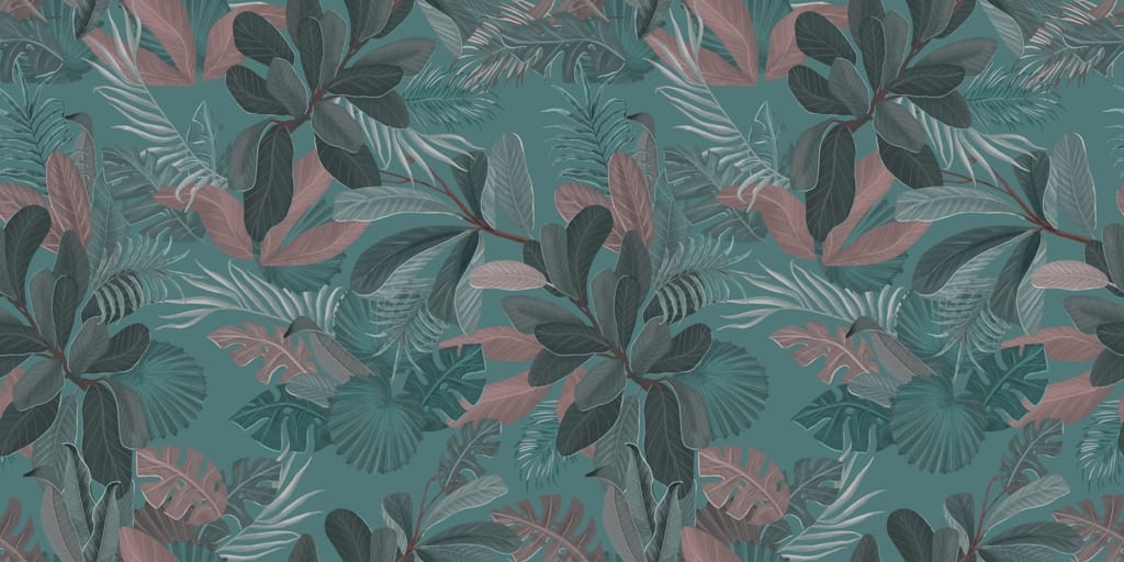 Moderní nástěnná malba s motivem tropických listů v odstínech zelené a modré Dark Leaf Graphic - hlavní obrázek produktu