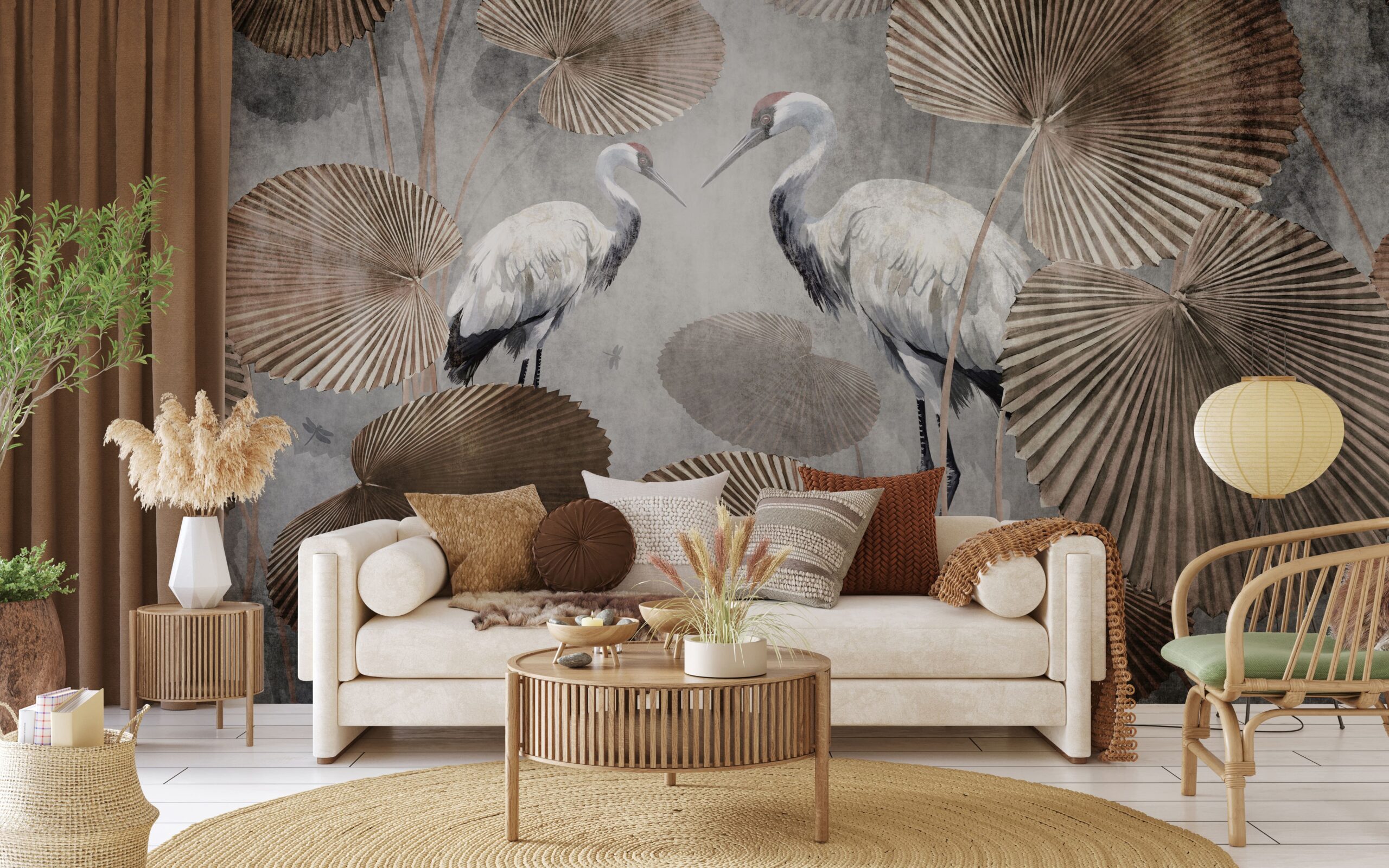 Oblouková nástěnná malba Jeřáby na betonu