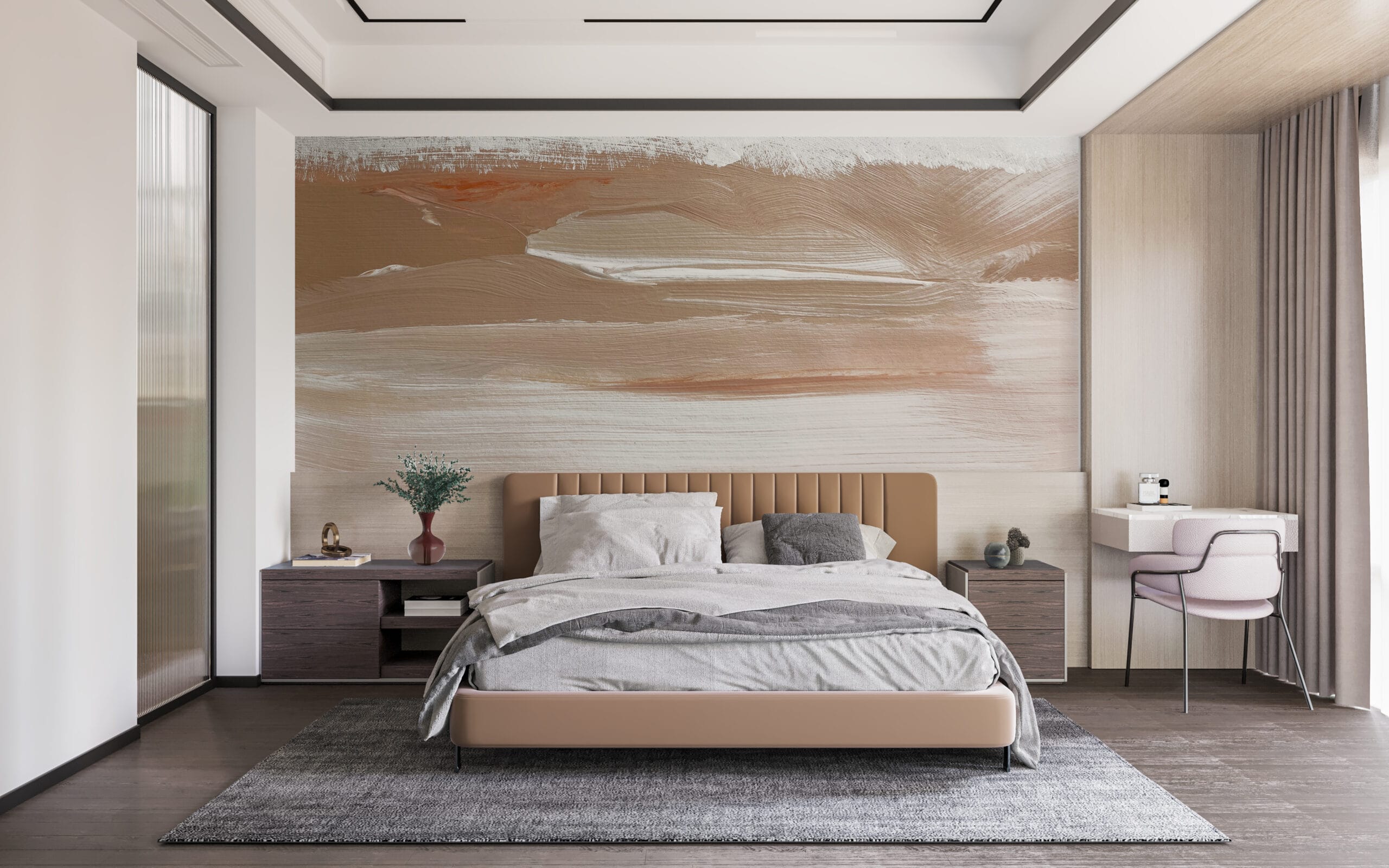 Nástěnná malba s jasnými tahy štětcem v minimalistickém stylu Hnědé vlny - obrázek číslo 2