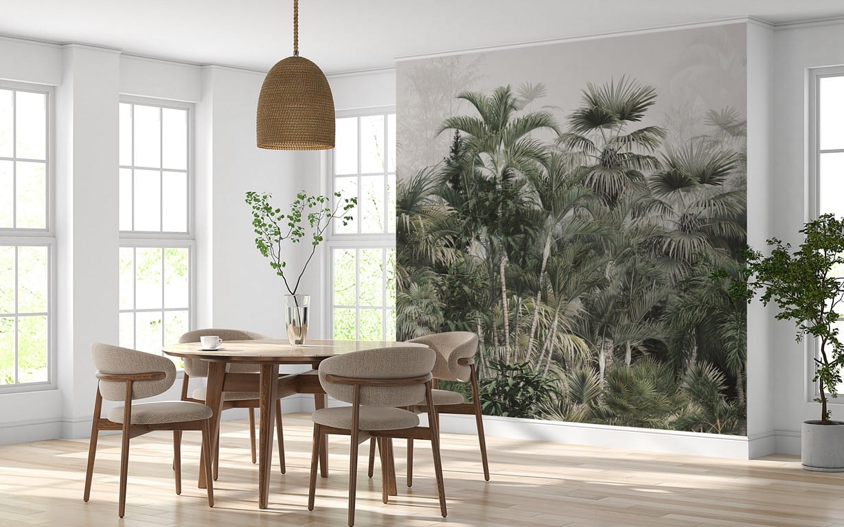 Pokud se řadíte mezi milovníky tropického podnebí a chcete je zavést do svého bytu, je prezentovaná fototapeta opravdu dobrou volbou. Zobrazuje hustou tropickou vegetaci, která se zdá být jemně zahalena lehkou mlhou. Barvy nejsou intenzivní, jsou záměrně tlumené a vytvářejí tajemnou a zároveň jemnou atmosféru. Proto je nástěnná malba tou správnou volbou pro ty, kteří hledají zajímavý a zároveň nenápadný způsob, jak dotvořit zeď.