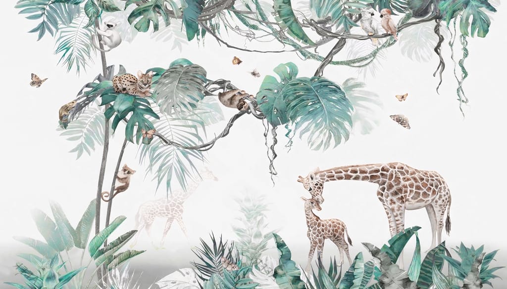 Nástěnná malba v tlumených barvách ideální pro dětský pokoj Wildlife Illustration - obrázek číslo 2