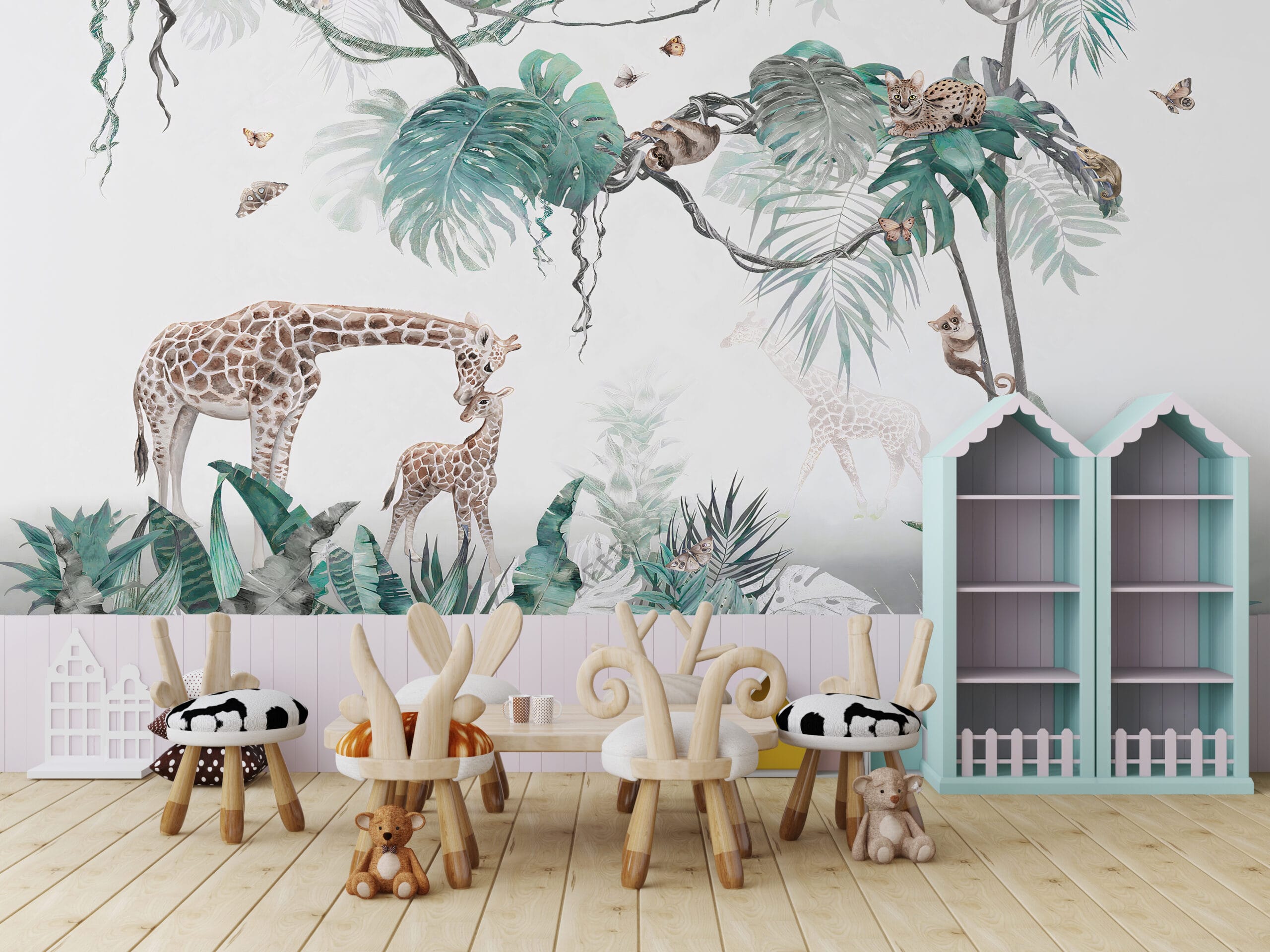 Nástěnná malba v tlumených barvách ideální do dětského pokoje Ilustrace divoké zvěře - hlavní obrázek produktu