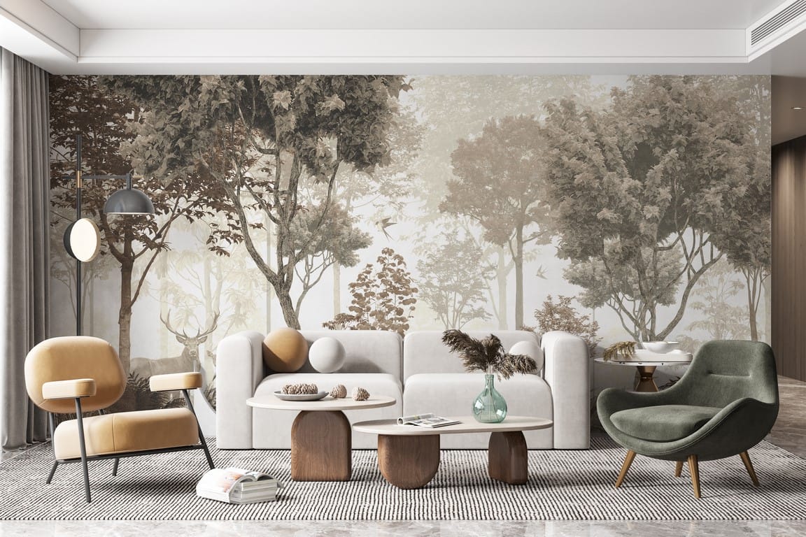 Tato nástěnná malba zachovává lehce tajemnou atmosféru a zobrazuje jeleny v temném lese. Díky sépiovému barevnému schématu vypadá mimořádně elegantně a stylově. Pokud hledáte originální způsob, jak dokončit stěnu v bytě, vyplatí se po něm sáhnout. Dobře se hodí do každé místnosti. S jeho pomocí lze mimořádně stylově zařídit obývací pokoj, ložnici i chodbu. Díky kvalitě zpracování je vhodný i pro ty nejnáročnější zákazníky, kterým se dosud nepodařilo najít dokonalou fototapetu.