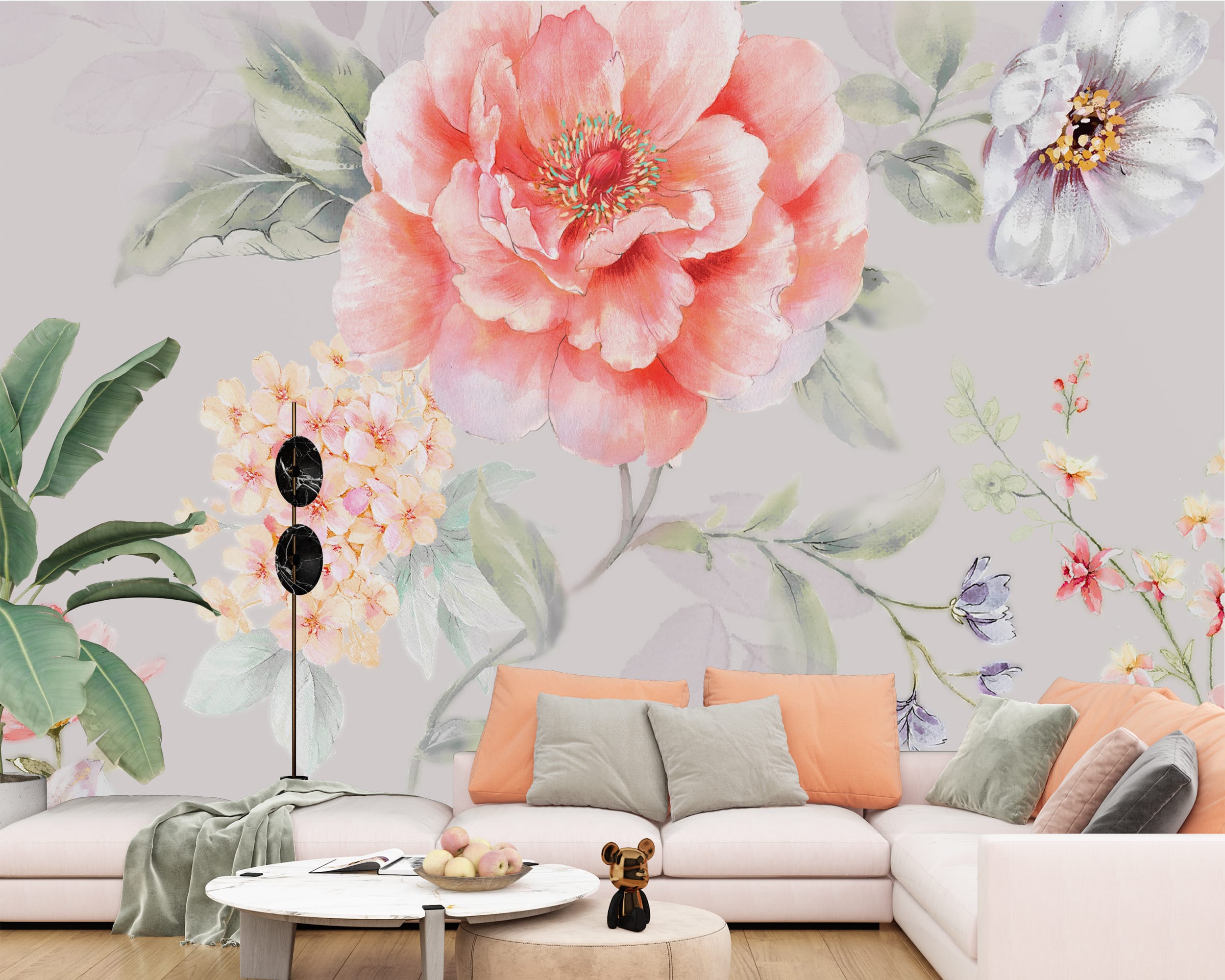 Oblouková nástěnná malba Romantická pivoňka