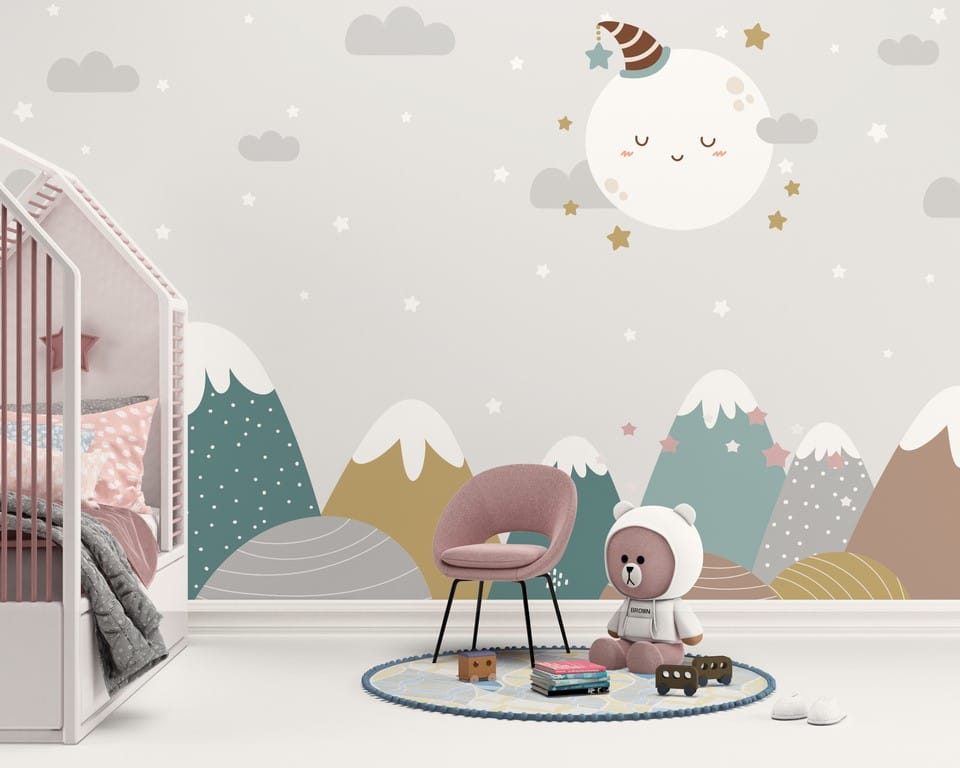 Nástěnná malba, jejíž design byl vytvořen s ohledem na děti. Vhodné do pokoje dětí všech věkových kategorií. Ideální pro předškoláky, ale také pro ty nejmenší, kteří právě přišli na svět. Sázkou na něj můžete vytvořit jedinečné dětské království. Zobrazuje klidný spící měsíc nad horami. Nástěnná malba upoutává pozornost tlumenými barvami. Nejsou zbytečně nápadné, a proto děti neunavují. Výhodou nástěnných maleb je jejich bezpečnost. Při jeho výrobě totiž nebyly použity žádné látky, které by mohly ohrozit zdraví dětí.