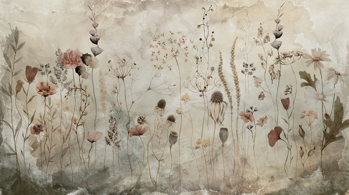Domů / Plakáty / ROSTLINY / Květinová louka v béžové barvě