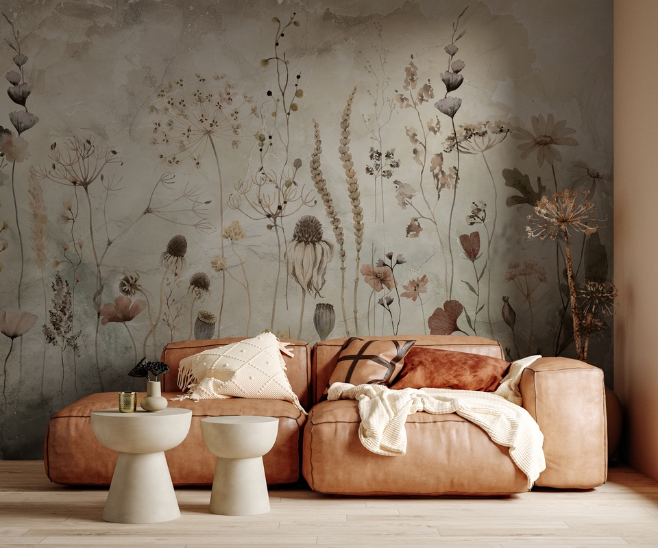 Květinová louka v béžové barvě