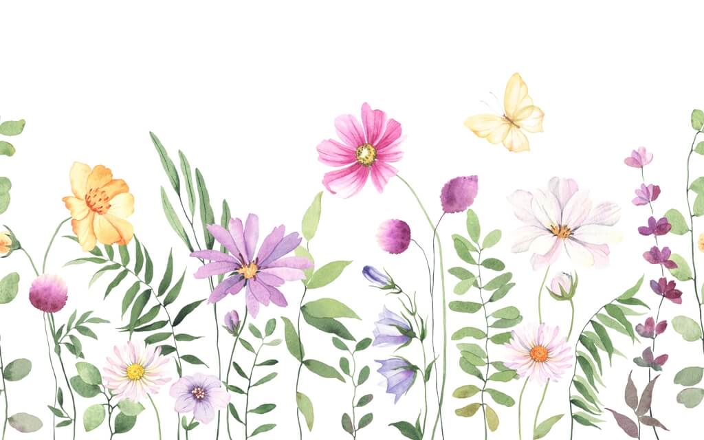 Nástěnná malba jemných divokých květin a motýlů na světlém pozadí Květiny na louce - obrázek číslo 2