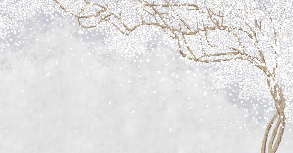 Nástěnná malba s japonským motivem v jasných odstínech Kvetoucí strom sakura - hlavní obrázek produktu