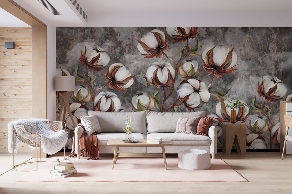 Fototapeta vhodná pro každého, kdo ocení originální a neotřelé prvky interiérového designu. Mimořádně elegantní a stylové květy bavlny jsou umístěny na šedém pozadí a vytvářejí kompozici, která se bude dobře vyjímat v každé místnosti. To je dobrá volba, pokud hledáte zajímavý způsob, jak zařídit stěnu v bytě. Nástěnná malba se skvěle hodí do interiéru v moderním stylu. Vzhledem k motivu na něm se hodí i do rustikálního pokoje.