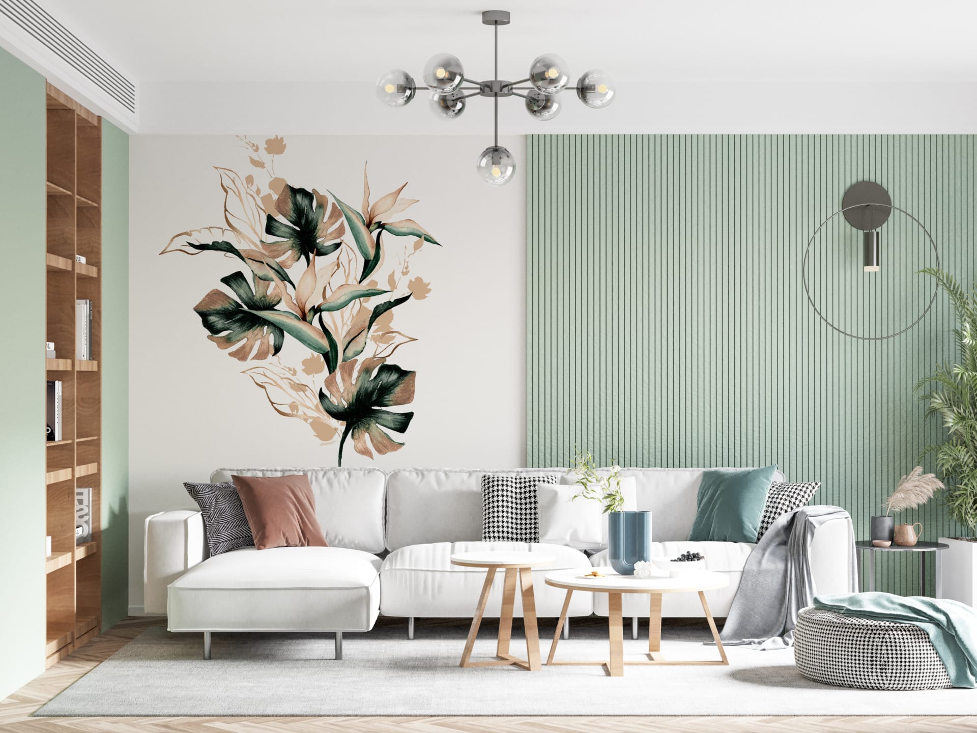 Nástěnná malba exotických rostlin na světlém pozadí Kytice listů - hlavní obrázek produktu