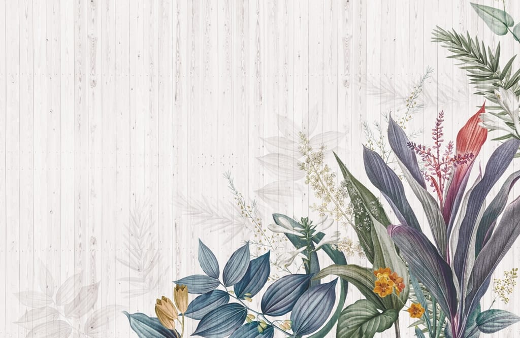 Elegantní a stylová nástěnná malba, která zaujme svou originální kompozicí. Kytice složená z listů a travin je umístěna na jemném pozadí, které může připomínat prkna. Rostliny v zářivých barvách se snoubí se světlým, jemným pozadím a vytvářejí nádhernou kombinaci. Nástěnná malba byla navržena tak, aby nepřehlušila interiér, ve kterém bude umístěna. Je to opravdu skvělá volba, pokud chcete originálně dokončit stěnu. Lze jej použít v jakékoli části domu v závislosti na individuálních potřebách a preferencích.
