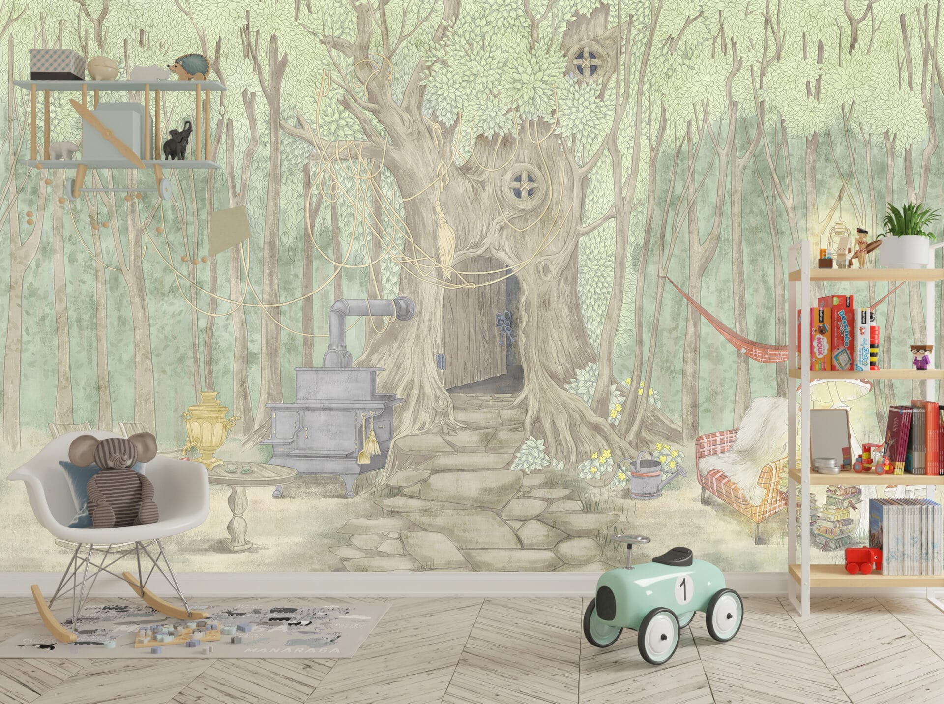 Esteticky příjemná a precizně vyrobená fototapeta s motivem lesního domku je ideální do každého dětského pokoje. Umožňuje vytvořit interiér, který je příjemný na pohled a útulný. Tato nástěnná malba je produkt, který je vyroben z kvalitních materiálů a moderní technologií. To se projevuje přesnou reprodukcí obrazových prvků a pěknými barvami. Kromě toho je nástěnná malba odolná, což má pro nástěnné dekorace v dětských pokojích značný význam.