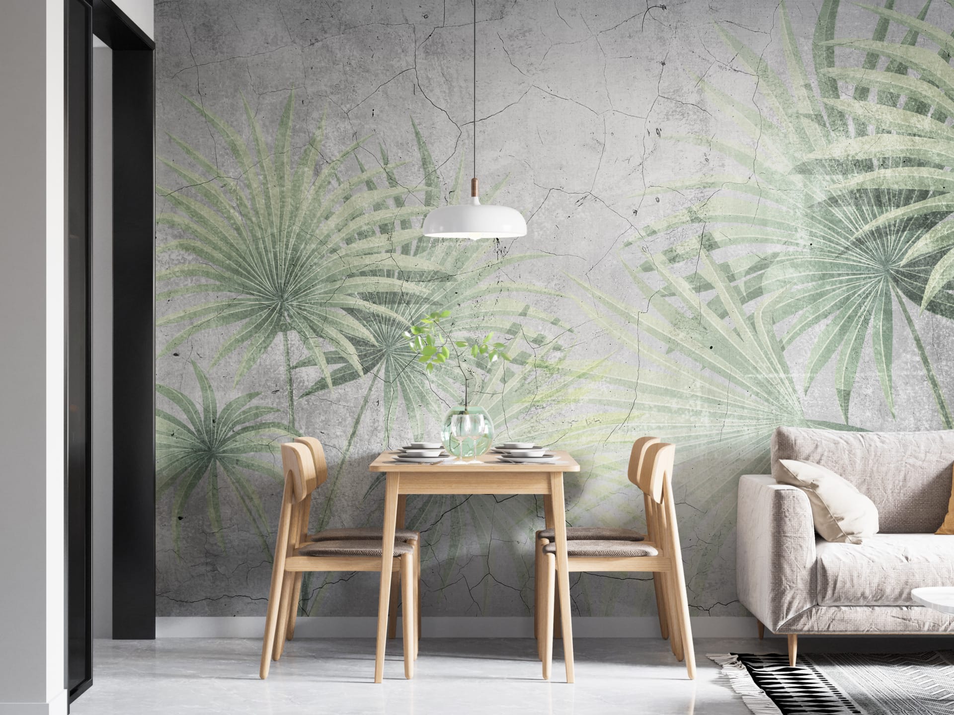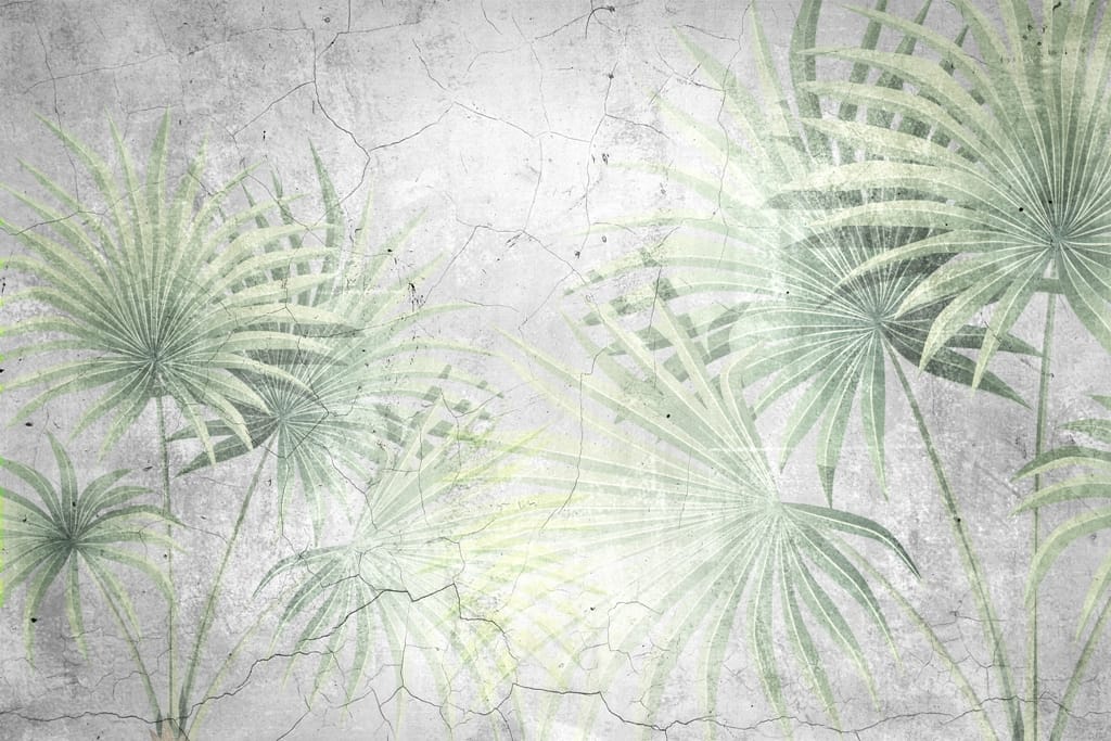 Nástěnná malba v jemných odstínech zelené a šedé Listy na popraskané zdi - hlavní obrázek produktu