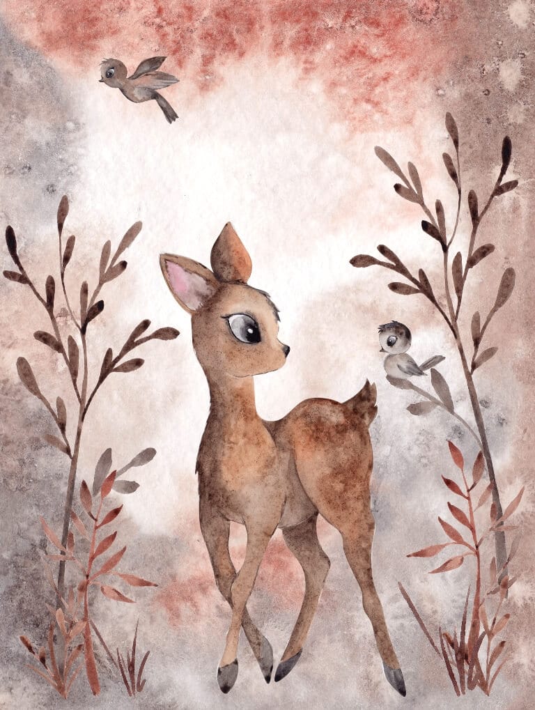 Dětská nástěnná malba s roztomilým zvířátkem v jemných barvách Little Deer - hlavní obrázek produktu