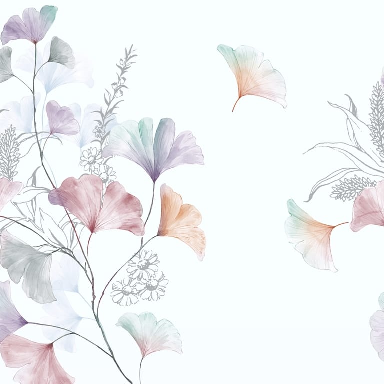 Nástěnná malba s jemným květinovým motivem ve světlých tónech na bílém pozadí - hlavní obrázek produktu