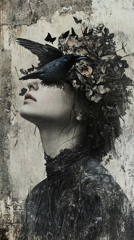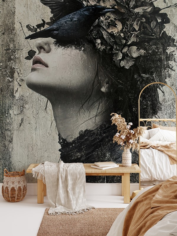Domů / Plakáty / ČERNÁ A BÍLÁ / Nástěnná malba ženy s ptákem