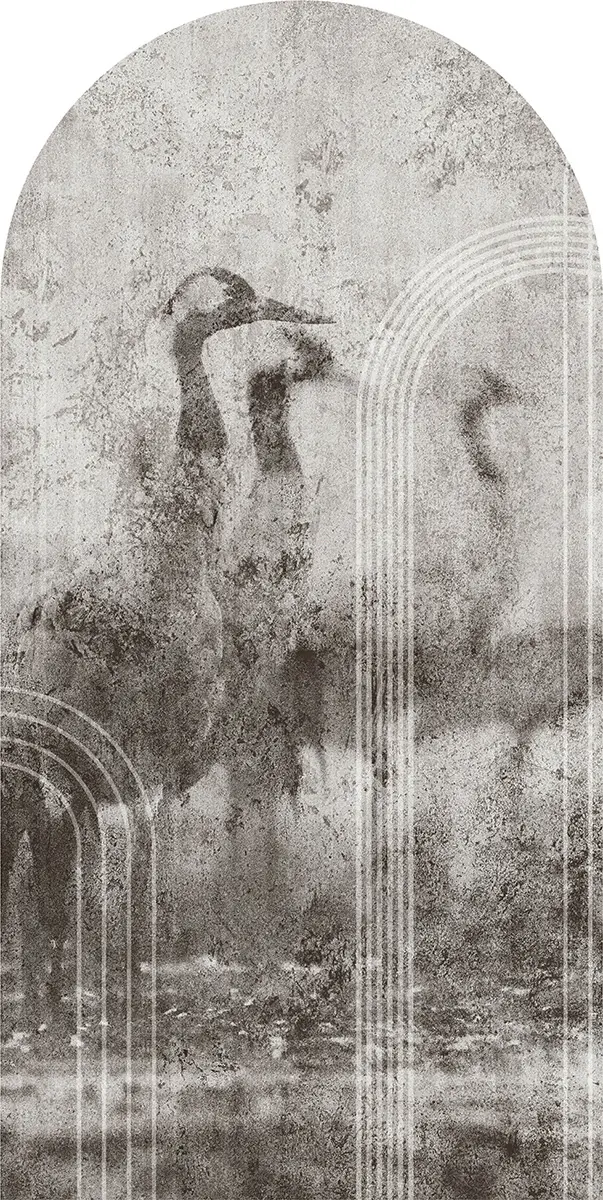 Oblouková nástěnná malba Jeřáby na betonu - Obrázek 2