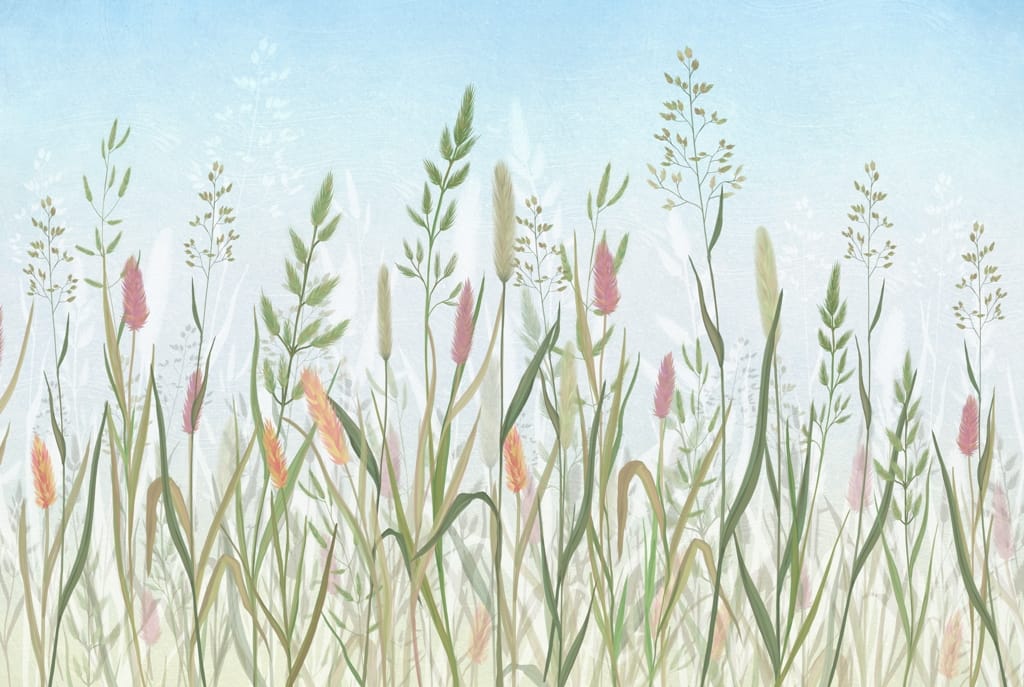 Pastelově zbarvená květinová nástěnná malba Ornamental Grasses - hlavní obrázek produktu