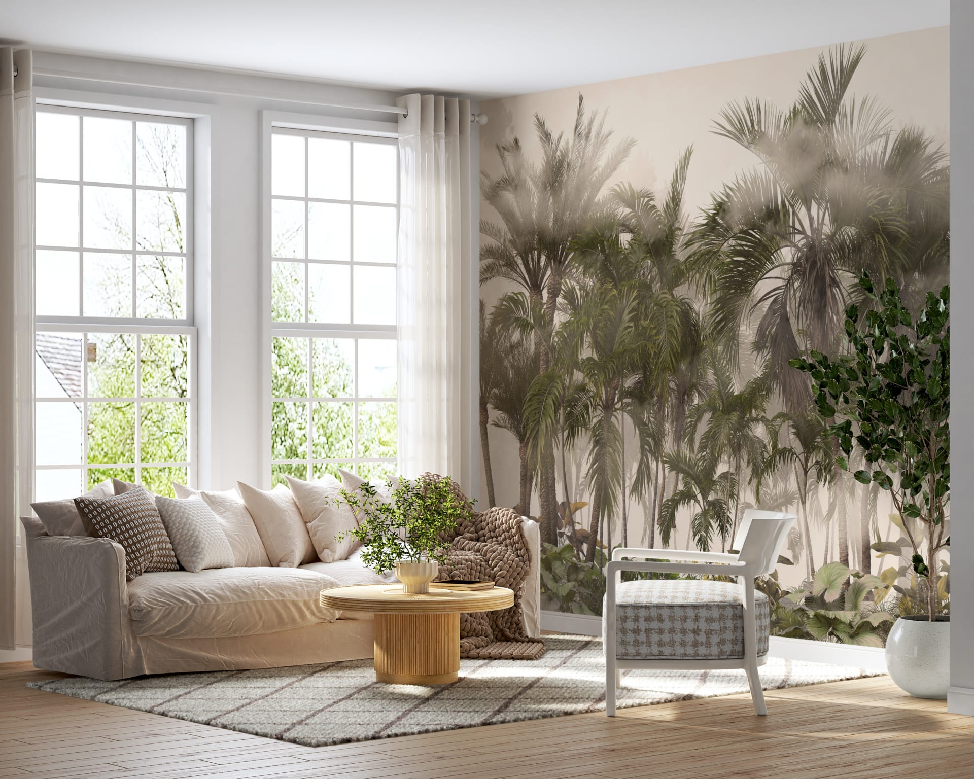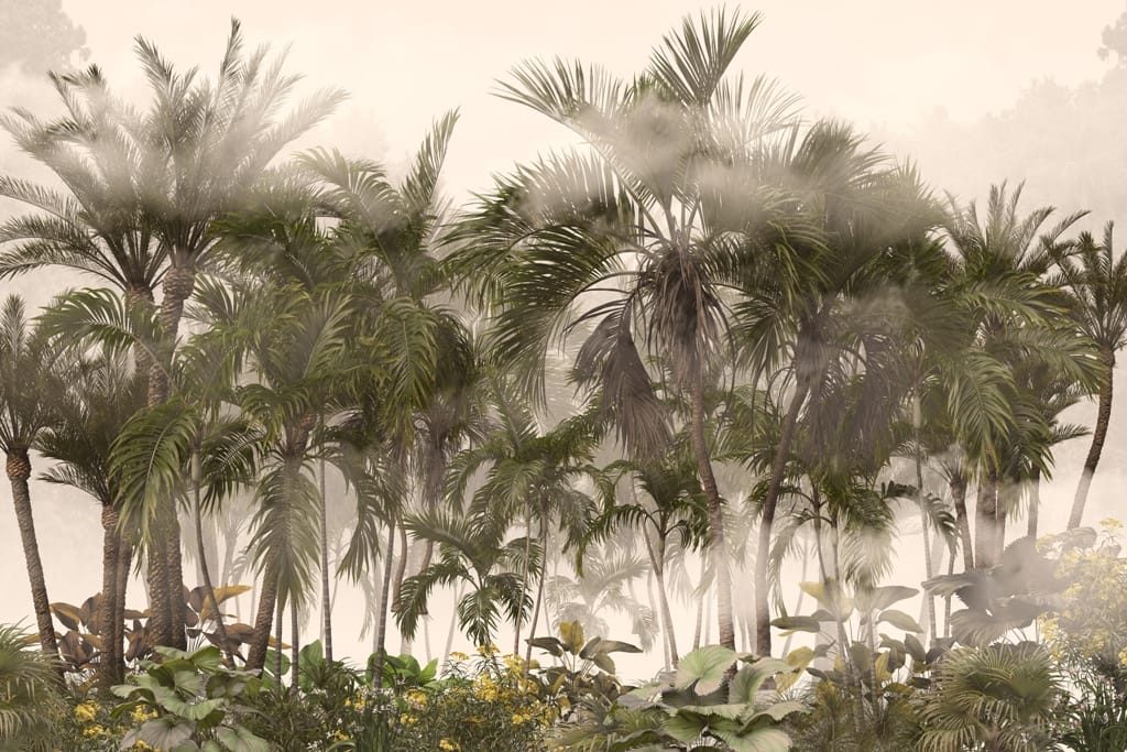 Nástěnná malba houštiny exotických stromů v zelené a šedé barvě Palmy v džungli - hlavní obrázek produktu