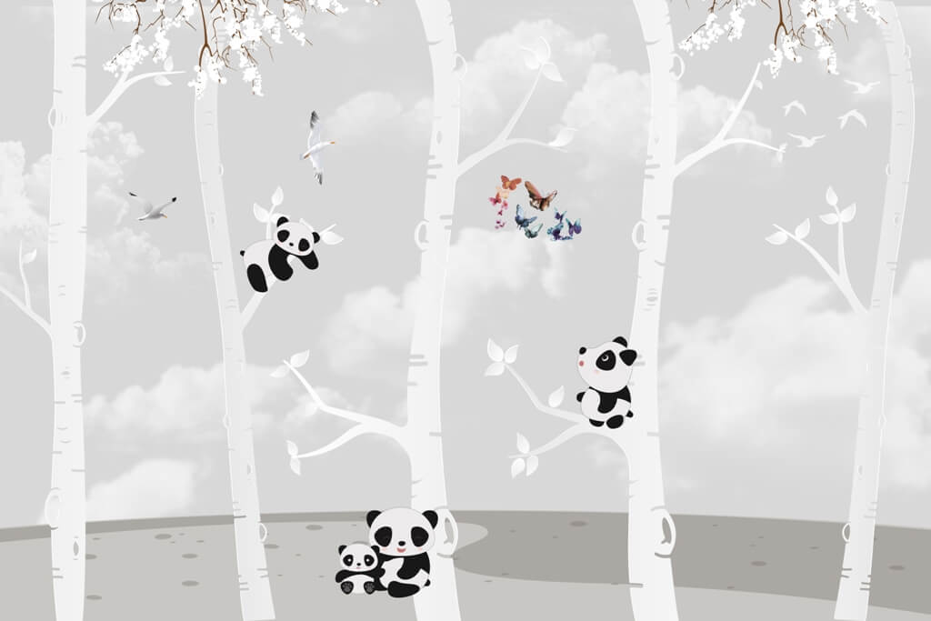 Nástěnná malba v tlumených tónech do dětského pokoje Pandy na stromech - hlavní obrázek produktu