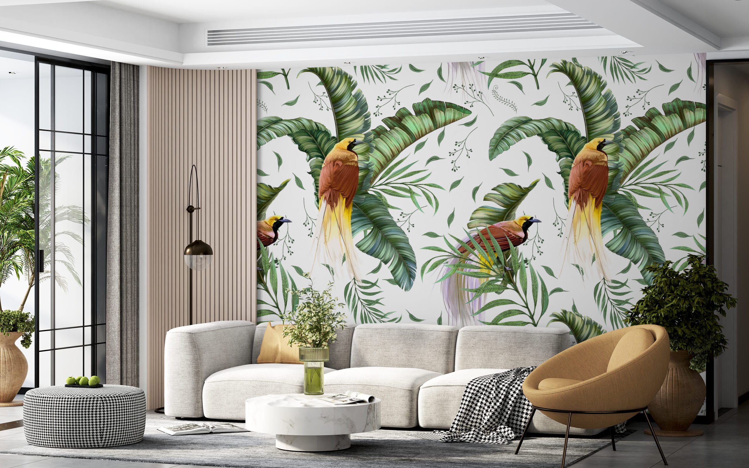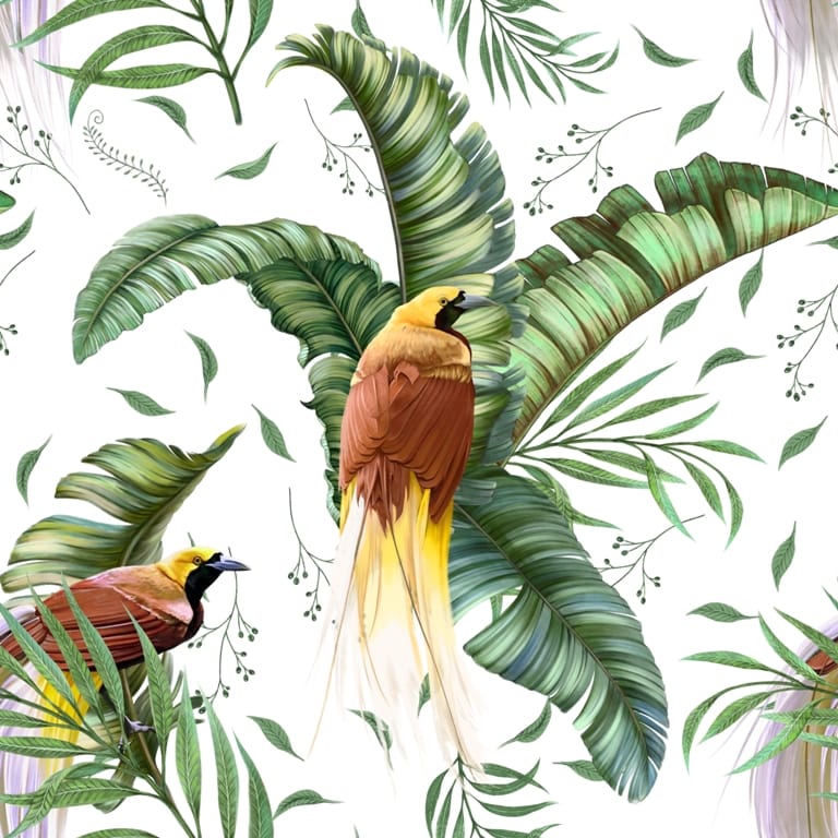 Nástěnná malba v bílé, zelené a hnědé barvě Birds of Paradise - hlavní obrázek produktu