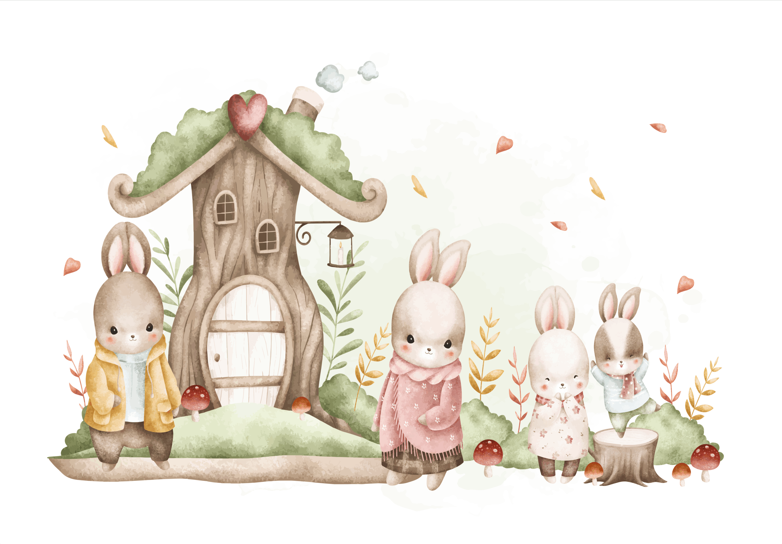 Domů / Fototapety / Pro děti / HOLKA / Rodina lesních králíčků