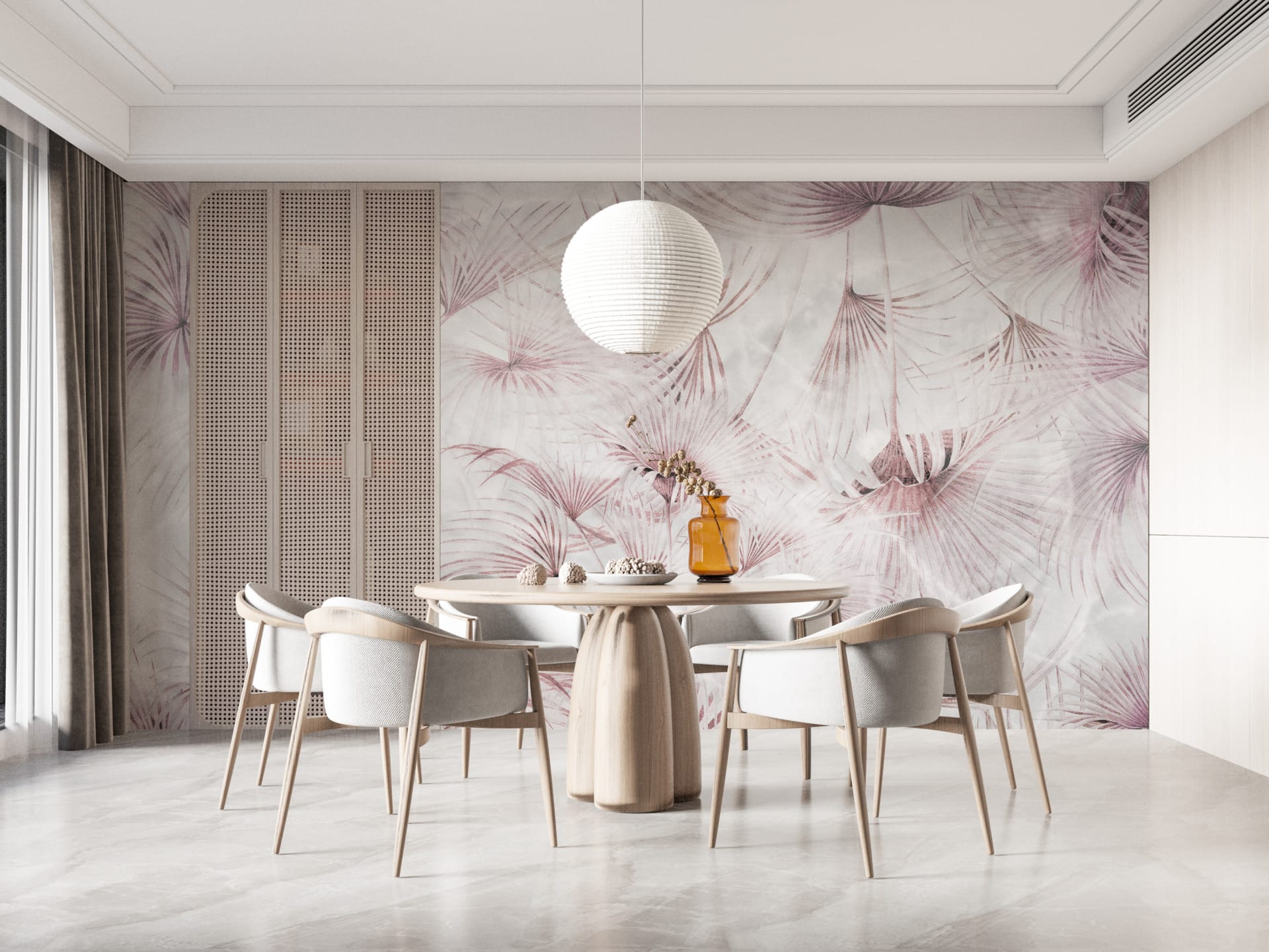 Nástěnná malba v teplých tónech Wall of pink leaves - hlavní obrázek produktu