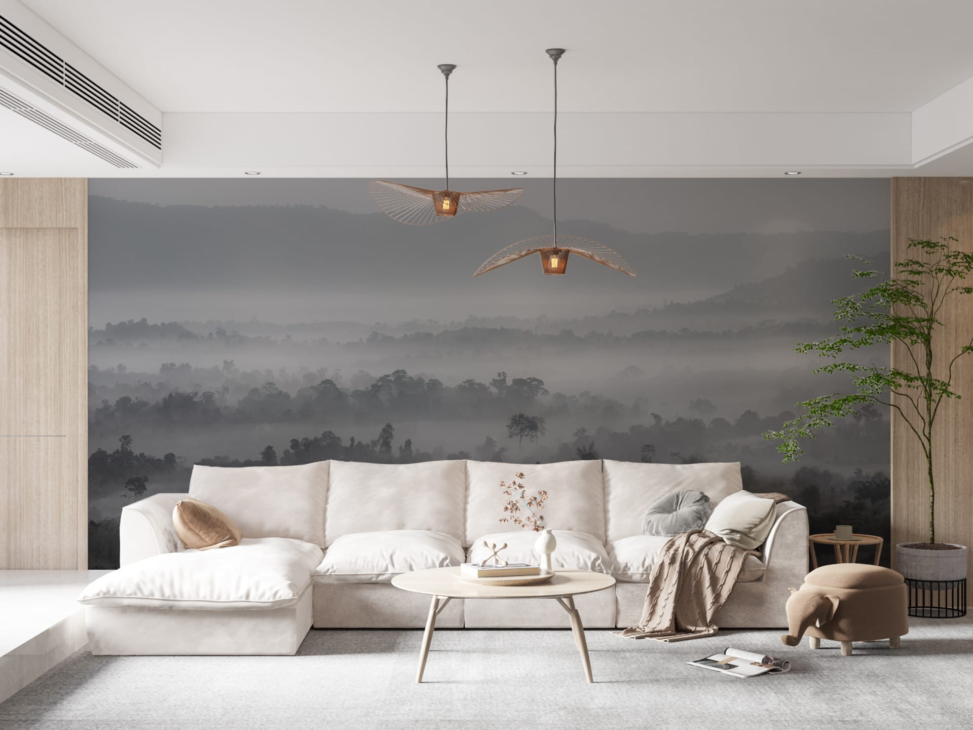 Nástěnná malba s horami v mlze Šedá krajina - obrázek číslo 2