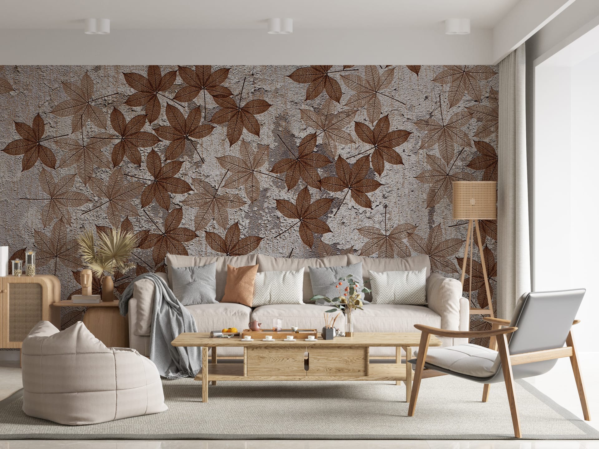 Nástěnná malba v podzimní hnědé barvě Wall of fine leaves - hlavní obrázek produktu