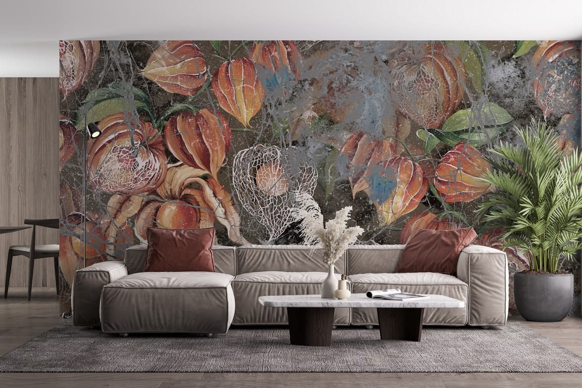 Nástěnná malba, která osloví všechny milovníky suchých květin. Představuje měch, který si mnozí z nás spojují se šťastným a bezstarostným dětstvím. Oranžová barva měchů byla přerušena bílou a různými odstíny šedé. Výsledkem je mimořádně elegantní a stylová jednotka, která se bude dobře vyjímat v různých částech domu. Fototapetu lze použít k výzdobě obývacího pokoje, ale i chodby a kuchyně. Může se také stát skvělou součástí ložnice. Je to dobrá volba pro každého, kdo hledá neobvyklé motivy ideální do interiéru.