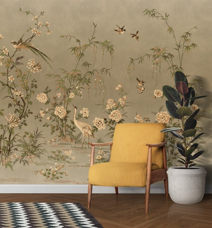 Okouzlující nástěnná malba určená pro ty, kteří oceňují přírodní motivy. Zobrazuje ptáky ukryté mezi jemnou vegetací.