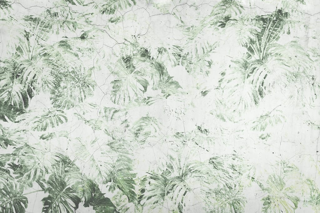 Nástěnná malba v boho stylu z listů monstery na bílém pozadí Rubbed Plant Motif - hlavní obrázek produktu