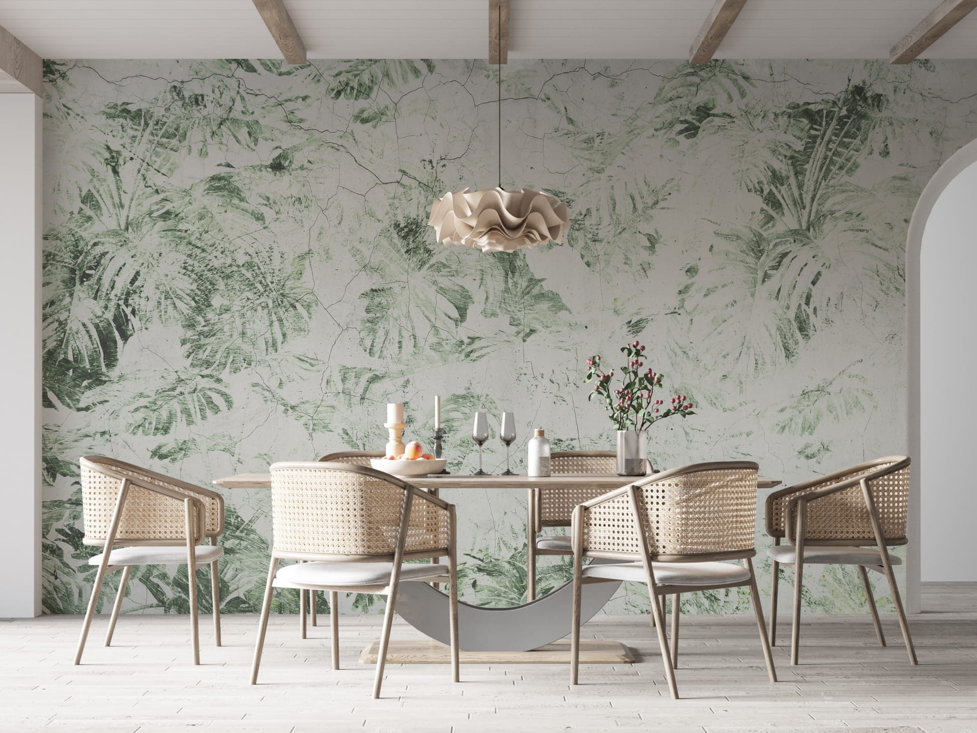 Oblouková nástěnná malba Jemné květiny