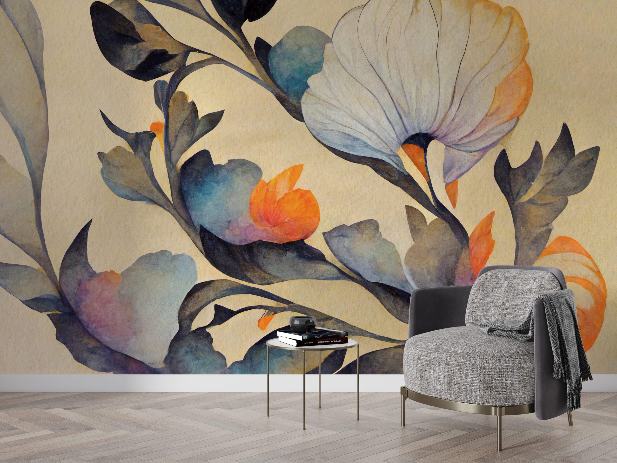 Oblouková nástěnná malba Jemné květiny
