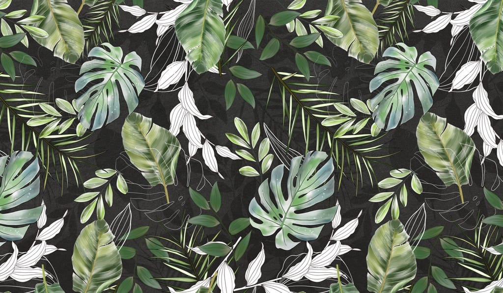 Nástěnná malba exotických rostlin Tropické listy na černém pozadí - hlavní obrázek produktu