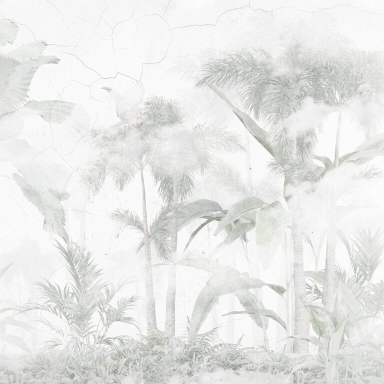 Nástěnná malba v šedých tónech s tropickým motivem Faded Jungle - hlavní obrázek produktu