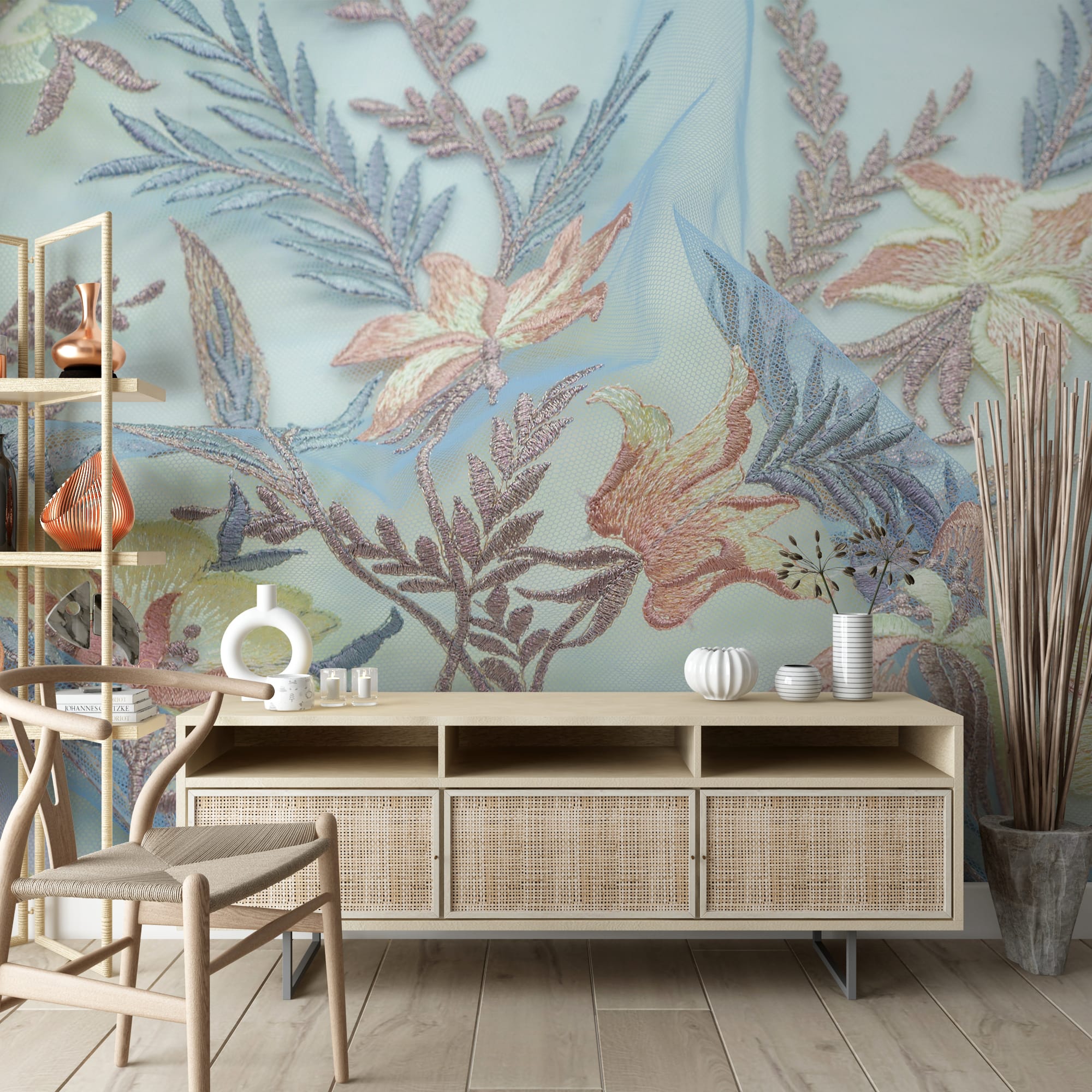 Nástěnná malba v jemných pastelových barvách Vyšívané květiny - hlavní obrázek produktu