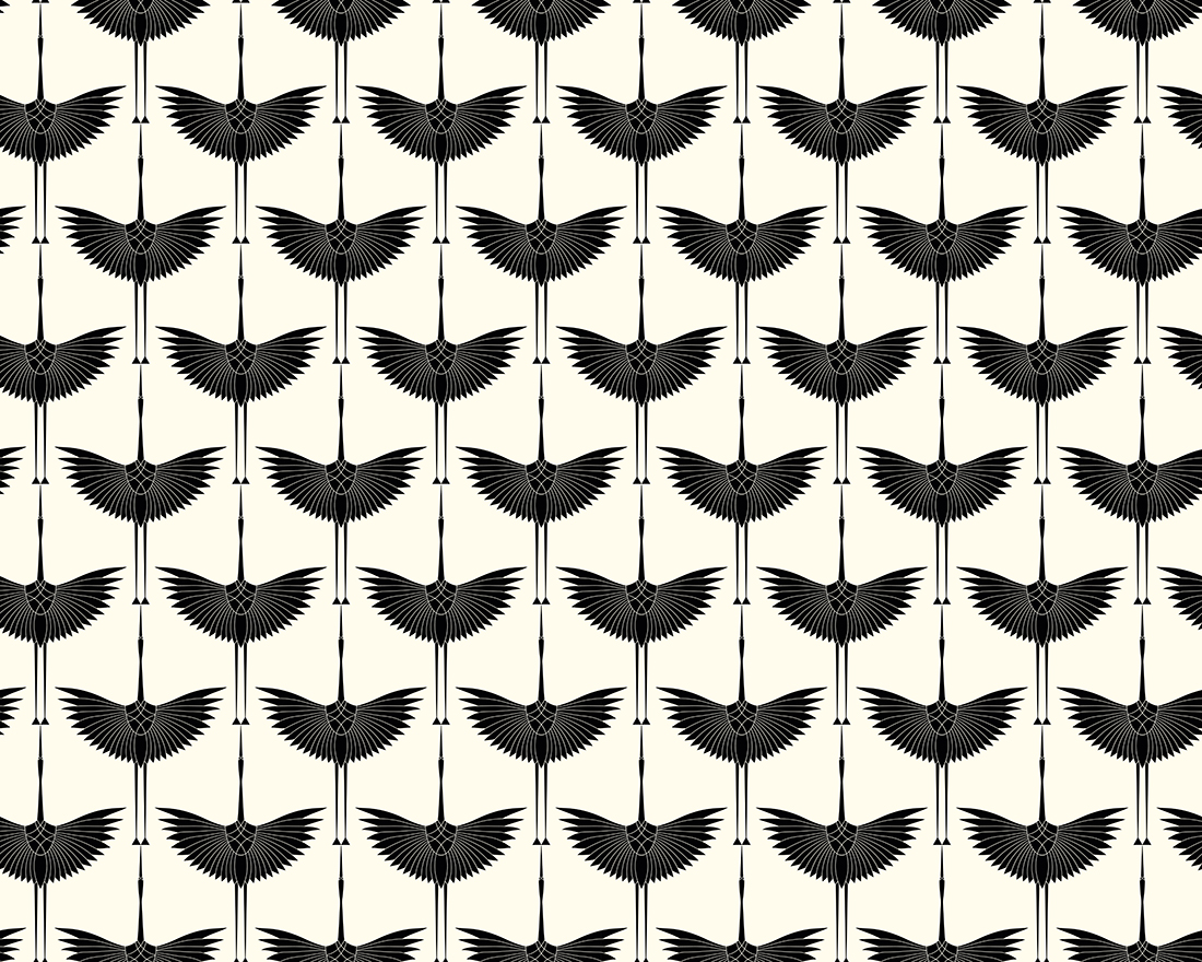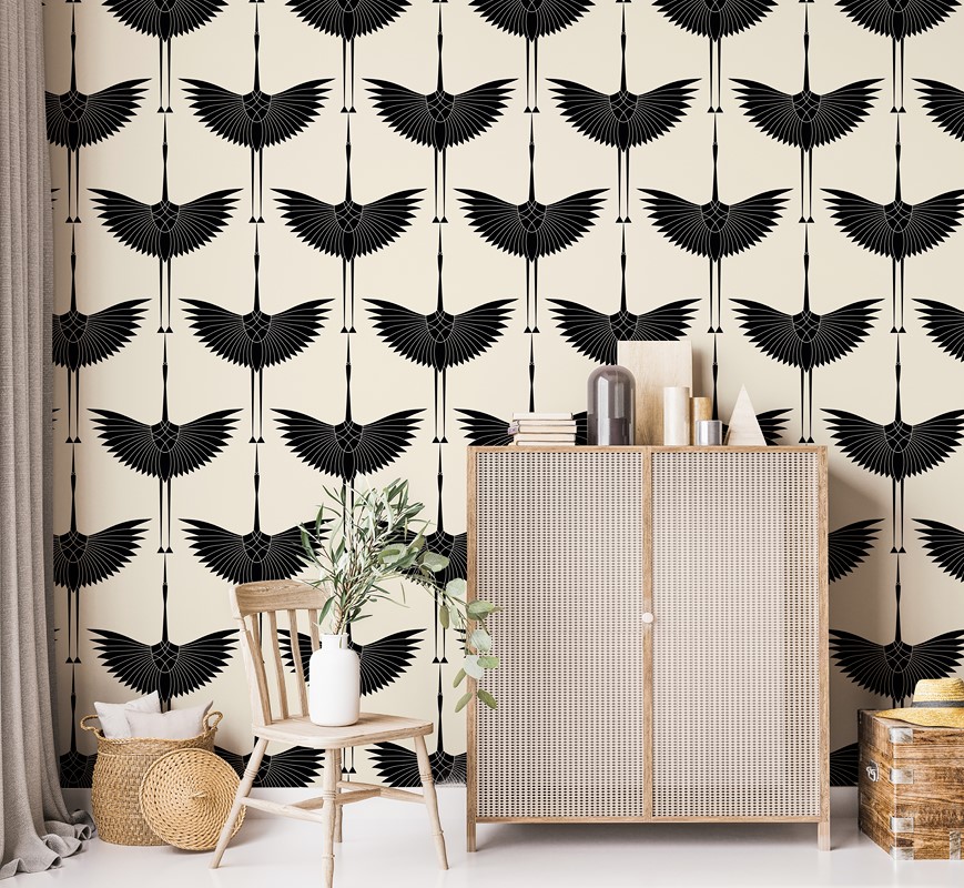 Oblouková nástěnná malba Jeřáby na betonu
