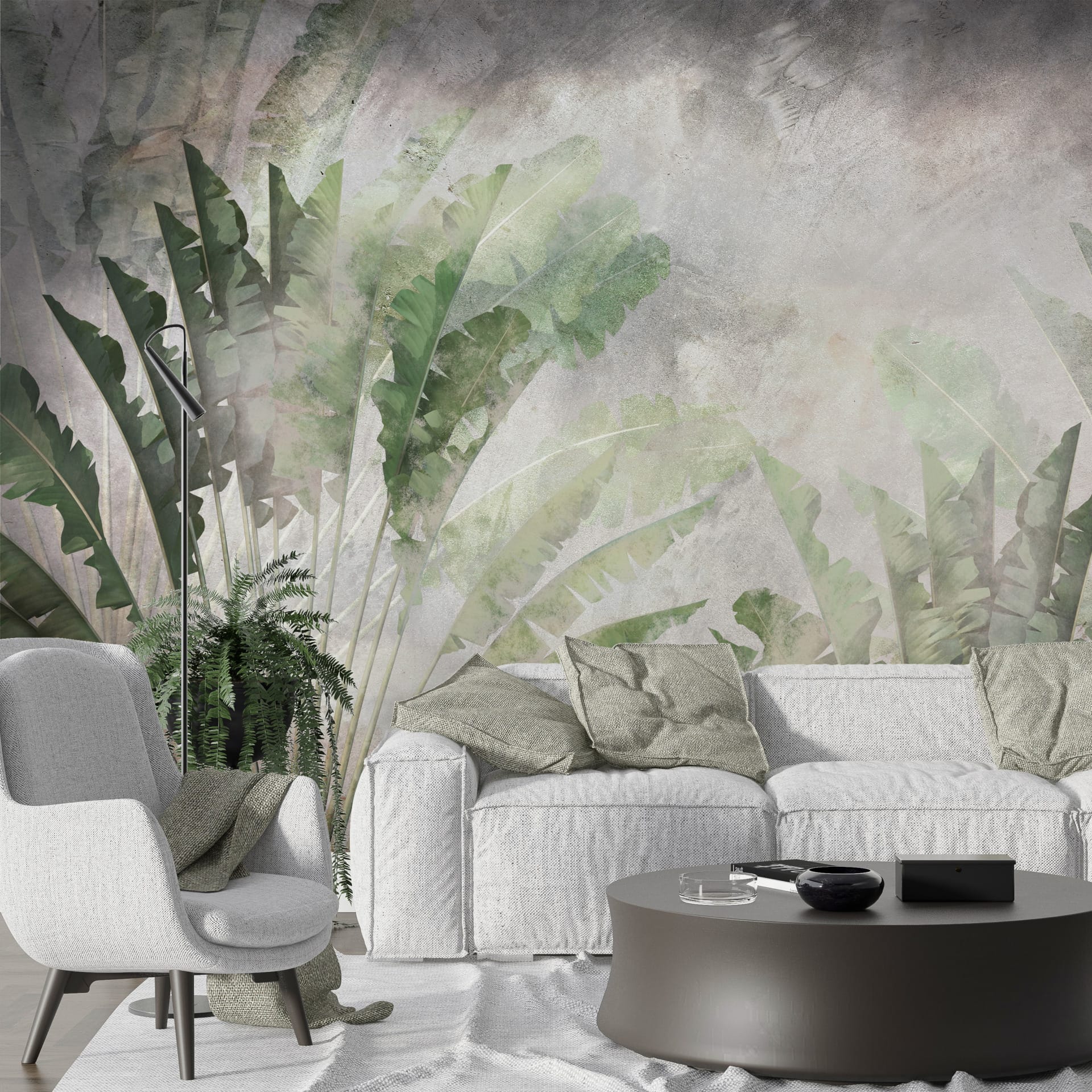 Nástěnná malba s tropickým motivem Green Fans in the Mist - hlavní obrázek produktu