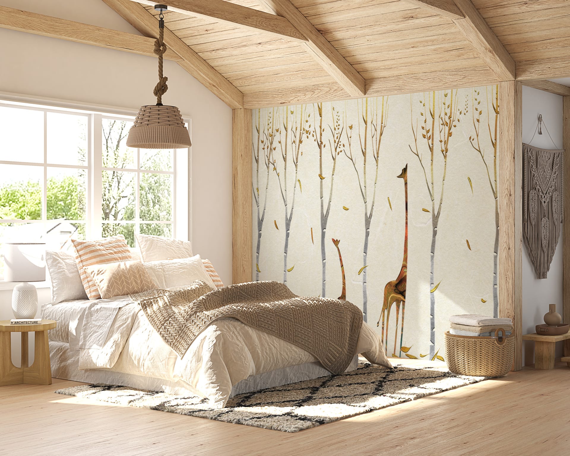 Pestrobarevné nástěnné malby Žirafy mezi stromy - hlavní obrázek produktu