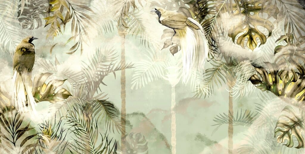 Nástěnná malba exotické flóry ve zlaté záři ideální do obývacího pokoje Golden Jungle - hlavní obrázek produktu
